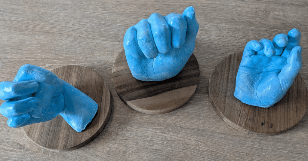 “We had a lovely afternoon meeting Sarah and Cameron. Sarah even managed to take a cast of Joe’s brothers’ hands too, Sam and Tom.
